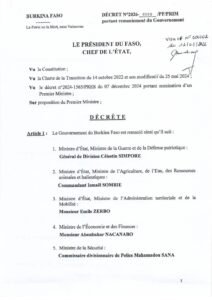 Vu le décret n°2024-1565/PRES du 07 décembre 2024 portant nomination d’un Premier Ministre;