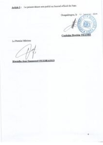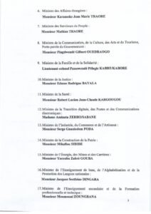 Article 1: Le Gouvernement du Burkina Faso est remanié ainsi qu’il suit: