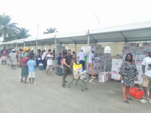 Dès les premières heures de la matinée, ce méga marché a enregistré une forte affluence, avec des milliers de Gabonais venus des quatre coins du Grand Libreville pour s’approvisionner en produits de première nécessité à des prix significativement réduits. Parmi les produits proposés figuraient notamment la volaille, la viande, le riz, l’huile, les conserves, les pâtes alimentaires, les produits laitiers, ainsi que les produits d’entretien et d’hygiène corporelle.
