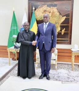 Le Président de la République, Chef de l’État, Chef du Gouvernement, a reçu le 20 janvier 2025 au Palais présidentiel, les évêques de la Conférence Épiscopale du Gabon (CEG). La délégation, conduite par Monseigneur Jean-Vincent Ondo Eyene, évêque d’Oyem et Président de la Conférence Épiscopale du Gabon, est venue faire le point sur les travaux de la 33ᵉ Assemblée plénière ordinaire de la CEG, traditionnellement tenue au mois de janvier, autour du thème de l’autonomie financière de l’Église.