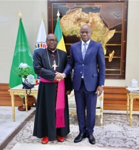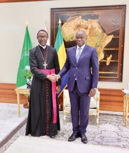 Le Président de la République, Chef de l’État, Chef du Gouvernement, a reçu le 20 janvier 2025 au Palais présidentiel, les évêques de la Conférence Épiscopale du Gabon (CEG). La délégation, conduite par Monseigneur Jean-Vincent Ondo Eyene, évêque d’Oyem et Président de la Conférence Épiscopale du Gabon, est venue faire le point sur les travaux de la 33ᵉ Assemblée plénière ordinaire de la CEG, traditionnellement tenue au mois de janvier, autour du thème de l’autonomie financière de l’Église.