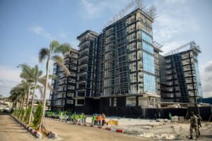 La journée a débuté à la Cité de la Démocratie, vaste complexe institutionnel en pleine réhabilitation après plusieurs années d’abandon. Implanté sur 434 hectares, le site regroupe notamment un centre de congrès de 3 000 places, un centre présidentiel, un palais présidentiel, 55 villas, un zoo ouvert au public, des infrastructures techniques modernisées ainsi que 12 km de voiries intérieures. Avec 2 300 personnes mobilisées, dont 70 % de main-d’œuvre gabonaise, le chantier affiche un taux d’exécution de 75 %, pour une livraison prévue fin 2026. Les deux dirigeants se sont ensuite rendus à la Cité Émeraude, appelée à devenir la future cité administrative du Gabon.